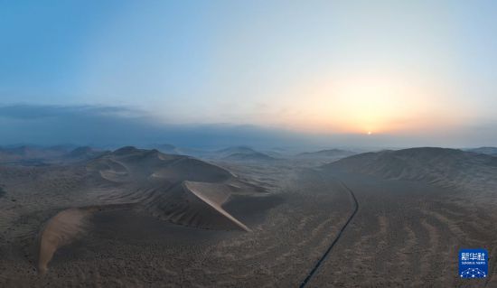 10月22日拍摄的巴丹吉林沙漠日出风光(无人机照片)。