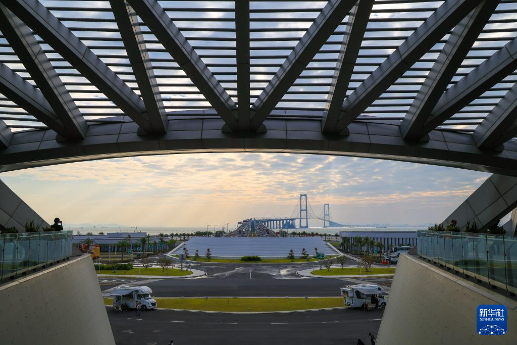 10月25日,在深中通道西人工岛中庭的观景平台拍摄的深中大桥和西人工岛景观。