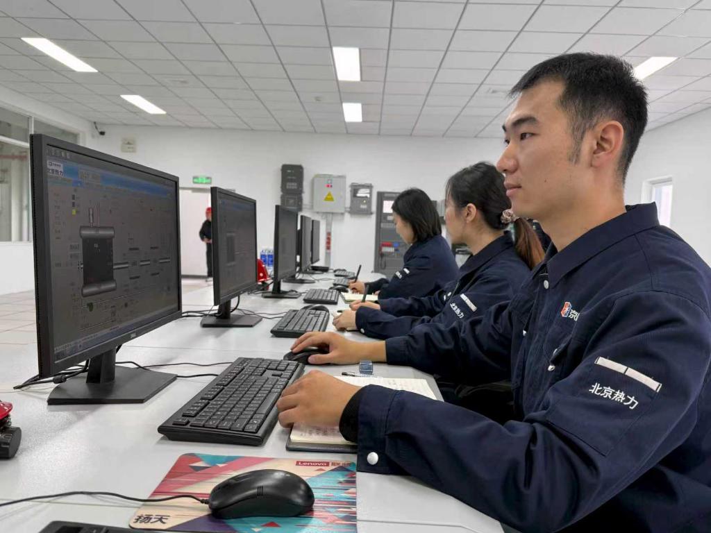 在北京市石景山区鲁谷北重尖峰热源厂监控室内,工作人员正查看设备运行参数。新华社记者 田晨旭 摄