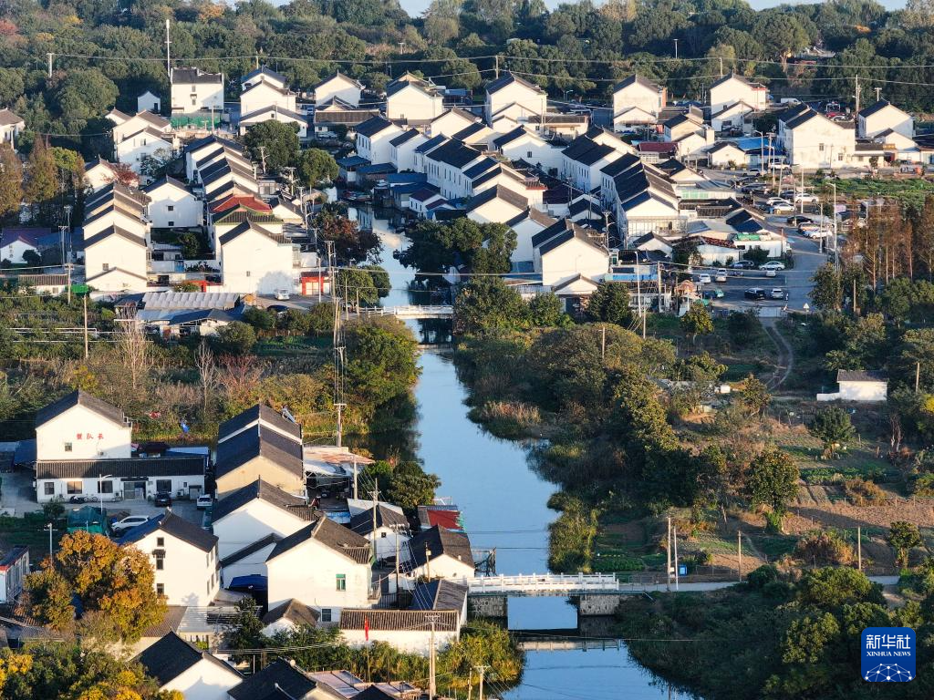 初冬时节,江苏省苏州市相城区阳澄湖“美人腿”半岛上粉墙黛瓦的传统民居,与稻田、湖水相映成趣,构成一幅和美的水乡生态画卷。
