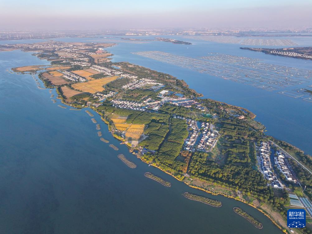 初冬时节,江苏省苏州市相城区阳澄湖“美人腿”半岛上粉墙黛瓦的传统民居,与稻田、湖水相映成趣,构成一幅和美的水乡生态画卷。