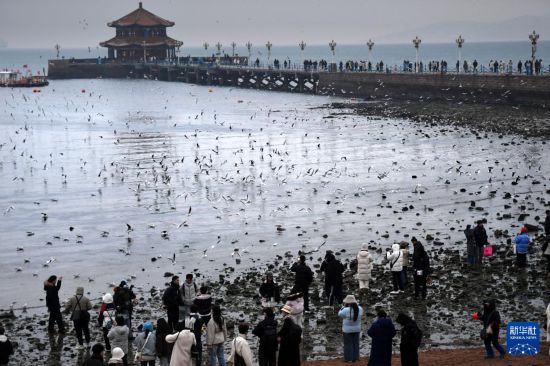 冬日,众多海鸥聚集在青岛栈桥景区飞舞、觅食,成为当地冬季旅游的标志性景观。