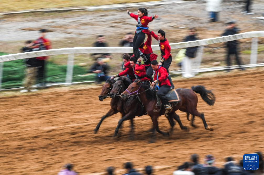1月1日,骑手在贵州省三都水族自治县举行的“村马”马术表演中。