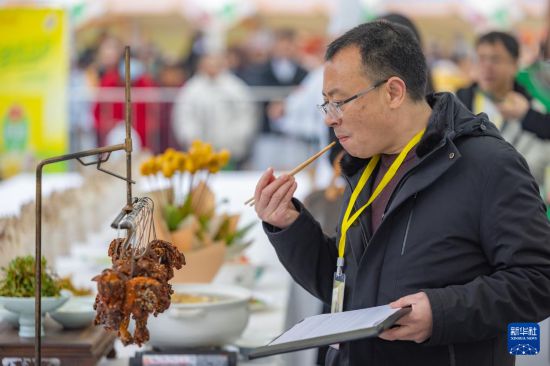 1月23日,嘉宾在比赛现场品尝特色美食。
