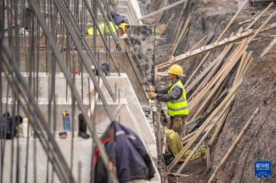 春节临近,在湖南邵(阳)永(州)高铁建设工地,施工人员抢抓工期,确保重点工程建设进度有序推进。