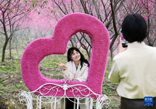 2月18日,游客在福建省罗源县松山镇北山村的樱花园里留影。